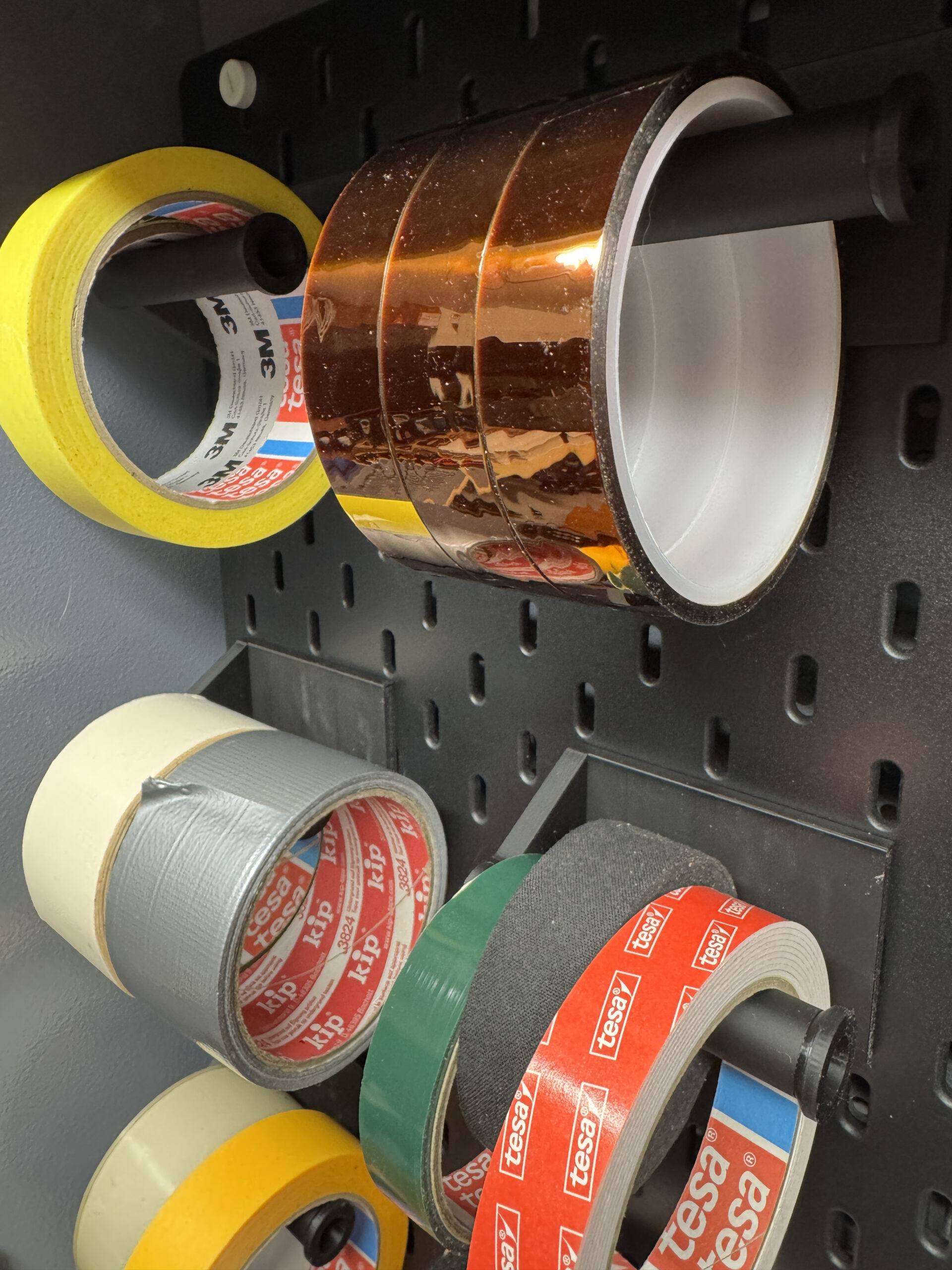 Seja para fechar encomendas, fazer trabalhos manuais ou isolar cabos elétricos, as fitas adesivas são essenciais, mas difíceis de arrumar. Com o nosso Suporte Horizontal para Fitas, compatível com os painéis IKEA Skadis, vais transformar a tua parede na estação de trabalho perfeita!